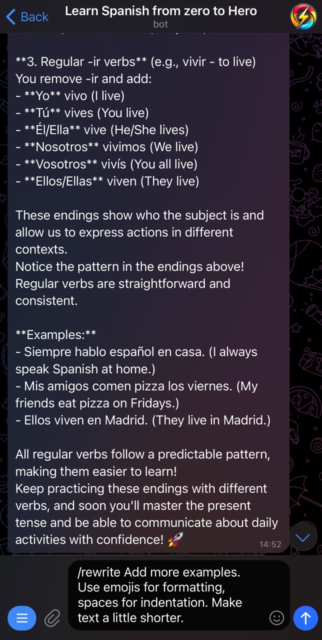 More examples, less text, broader topic or funnier explanation — everything up your taste